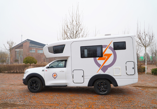 拖掛式D型房車也被稱為馱掛房車,是一種馱在皮卡車廂或是經過改裝的車槽上的車型,這款房車與其他房車相比最顯著的特點是沒有單獨