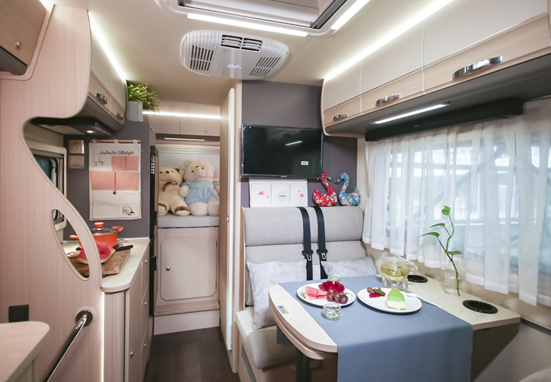 與自行式A型房車相比,自行式C型房車空間稍顯不足,但又比自行式B型房車空間寬敞、設備齊全--起居室、廚房、盥洗室、臥室具有大量櫥柜,攜帶大量行李絲毫不成問題。同時車內具有影音娛樂系統、空調、可轉化桌沙發椅等,總而言之,自行式C型房車是安裝在車輪上的空間緊湊、設備齊全的房車類型。